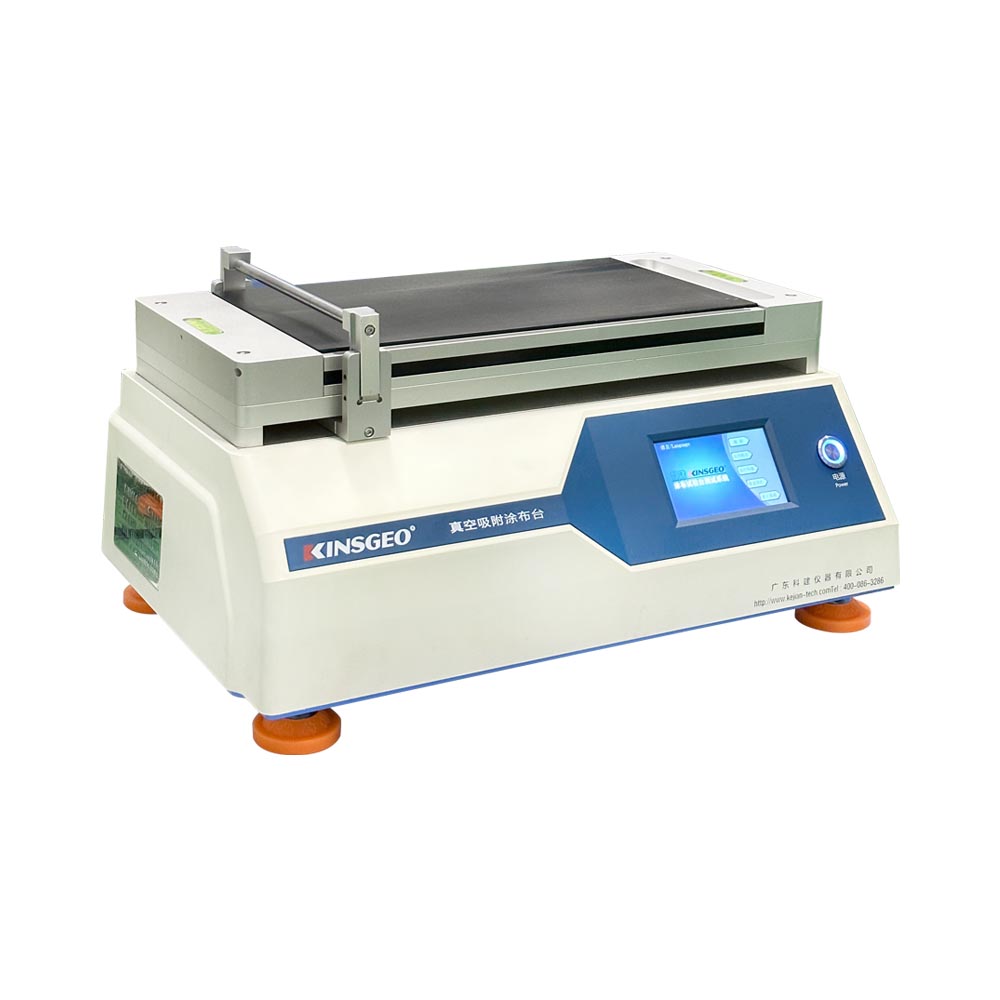 KJ-6017B小型真空吸附涂布機(jī)用于制備均一可溯的涂膜(手工涂膜經(jīng)常不協(xié)調(diào),特別是不同操作人員之間,這就使得試樣的比較很困難,甚至是不可靠),其重現(xiàn)性好。因?yàn)橛绊懲磕さ囊蛩厥羌羟兴俾屎图釉谑┕すぞ呱系闹亓俊T搩x器使用一個(gè)精確控制的線棒或涂膜器,以選定的速度來(lái)回移動(dòng)。由于試紙平整地被吸附在吸盤上且涂膜時(shí)剪切速率和加在施工工具上的重量保持不變,從而大大提高了涂膜的重現(xiàn)性。